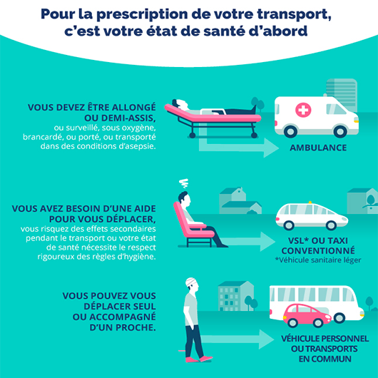 Pour se faire rembourser les frais de transport par la CPAM ou votre Mutuelle, il faut être en possession d’une prescription médicale de transport, un bulletin de situation que vous réclamer lors de votre consultation et une facture conventionné qui vous serez remis par votre chauffeur.